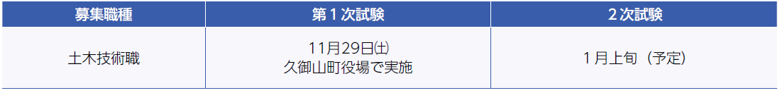 しごと 町職員を募集します 7/12 前の記事 次の記事 発行日 : 2025年10月15日 自治体名 : 京都府久御山町 広報紙名 : まちの総合情報紙 広報くみやま お知らせ版 令和7年10月15日号 No.1177 募集職種:土木技術職 募集人数:若干名 採用予定日:令和8年4月1日 申込:10月15日(水)~11月14日(金) その他:第2次試験の対象者へは別途通知します。実施要項など、詳しくはホームページをご確認ください。 詳しくはこちら(本紙4ページにQRコードを掲載しています) Tweet シェアする お知らせ(3) お知らせ(4)
