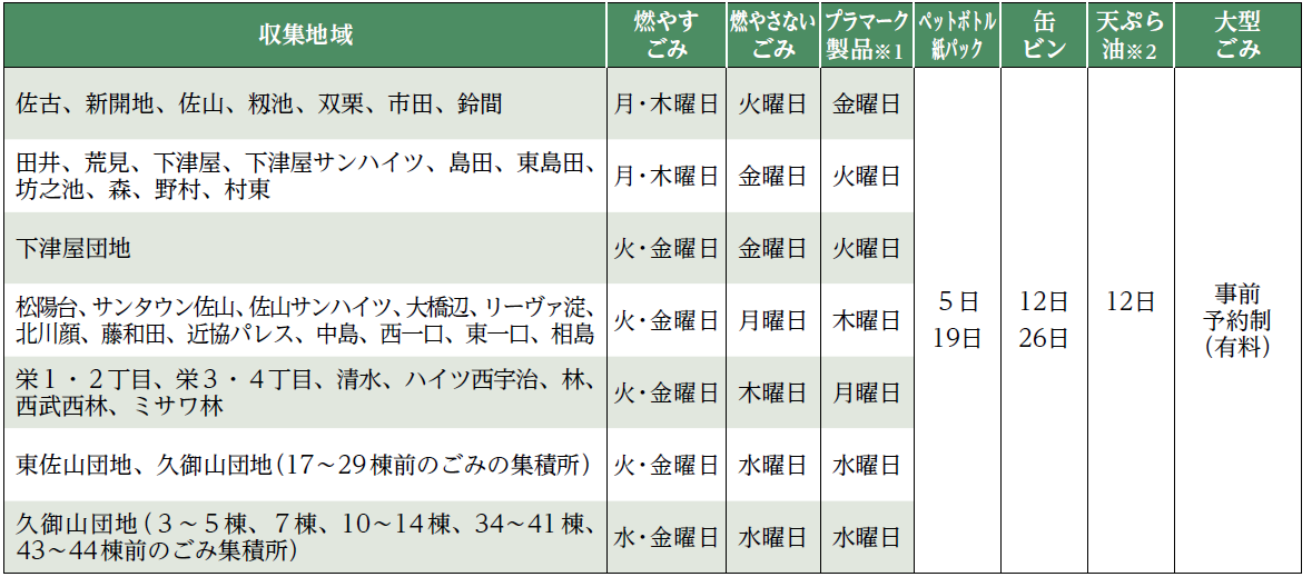 ※2 毎月第2水曜日に地域の集会所などの指定場所に容器に入れて出してください。ごみステーションは指定場所ではありません。
