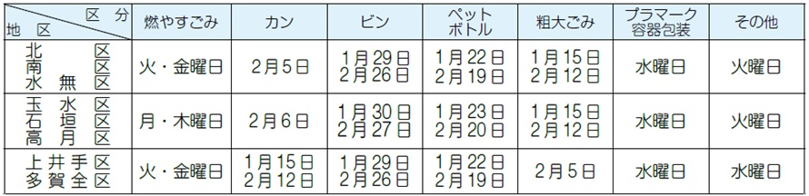 ・古紙等(新聞、雑誌、ダンボール、紙パック、雑紙(その他の紙類)ごとに分別のうえ)の収集は全地区毎週月曜日です。