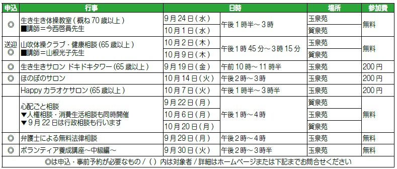 ※敬老祝賀式当日は老人福祉センター玉泉苑・賀泉苑、IDECAはお休みとなります。