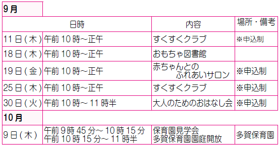 ※場所の記載のないものは、全て「子育て支援センター」で行います。