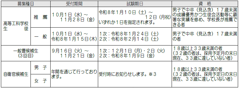 (注)※1.第2回試験実施時点にて採用予定人員数の採用が見込まれる場合は、第3回試験を実施しない場合があります。