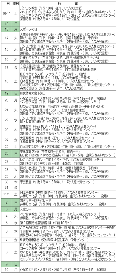 くらし まちのカレンダー(10月11日~11月10日) 38/39 前の記事 次の記事 発行日 : 2025年10月10日 自治体名 : 京都府井手町 広報紙名 : 広報いで 令和7年10月号 No.637 Tweet シェアする ごみ収集日程表(10月11日~11月) その他のお知らせ(広報いで 令和7年10月号 No.637)