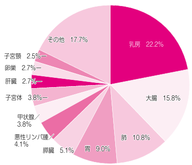 乳がんは女性が一番かかりやすいがんで、毎年約9万人以上が新たに罹患しています。日本人女性の9人に1人がなるといわれており、40代から50代の女性のがん死亡原因のトップになっています。