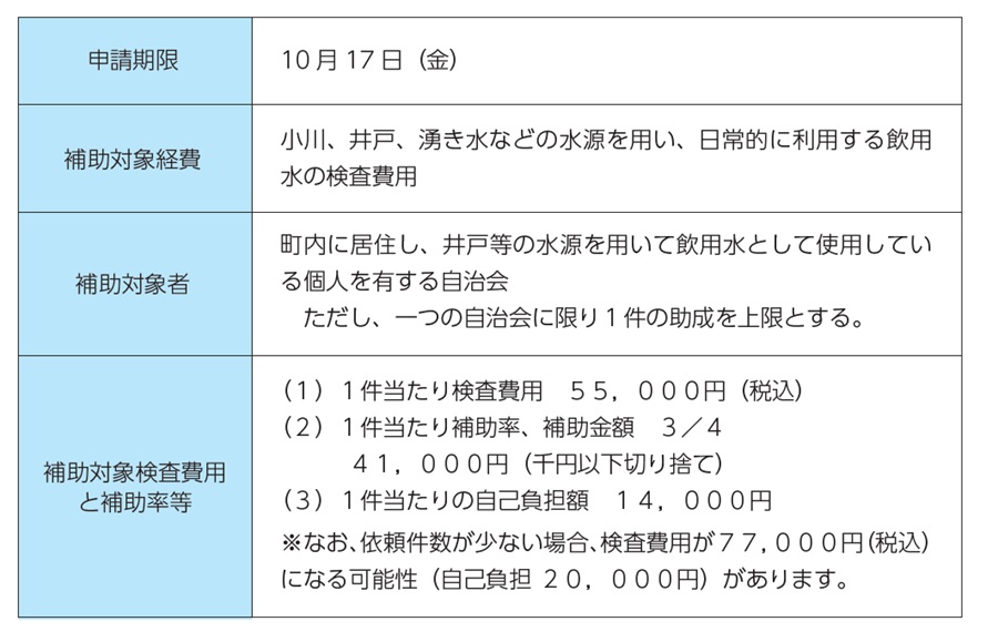 ■町簡易水道以外の飲用水をご利用の方へ 有機フッ素化合物(PFAS)検査費用を助成します
