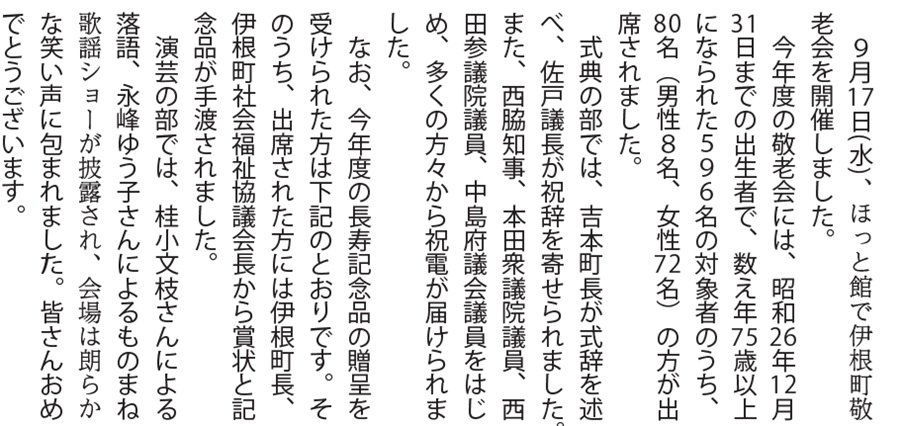 ■長寿のお祝い いつまでもお元気で~令和7年度伊根町敬老会~