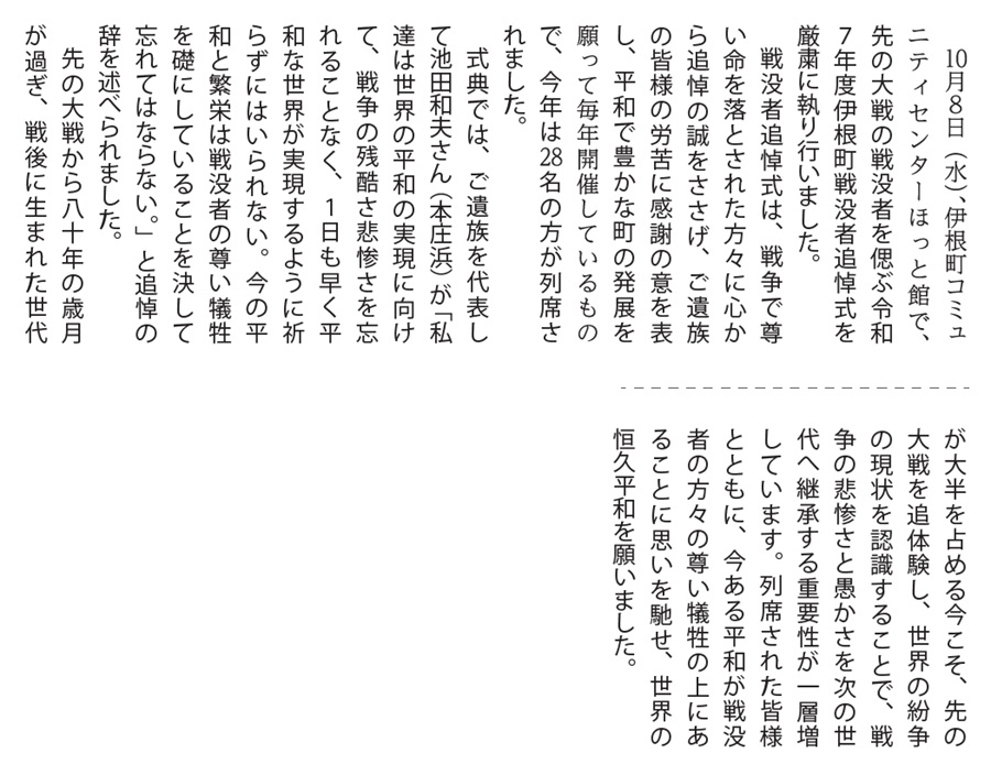 ■~戦後80年の節目に 平和への誓い新たに~伊根町戦没者追悼式 開催