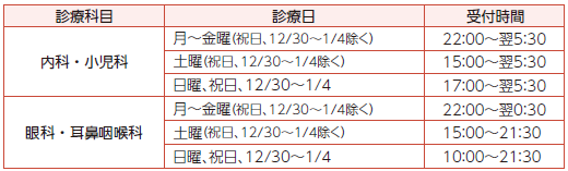 ※中野休日急病診療所の小児科は平日夜間(20:30~23:00)も診療を行っています。
