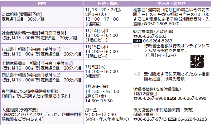 くらし 区役所での無料相談 8/34 前の記事 次の記事 発行日 : 2026年01月01日 自治体名 : 大阪府大阪市中央区 広報紙名 : 広報ちゅうおう 令和8年1月号 対象:市内在住の方 Tweet シェアする 各種健診・がん検診 その他の無料相談