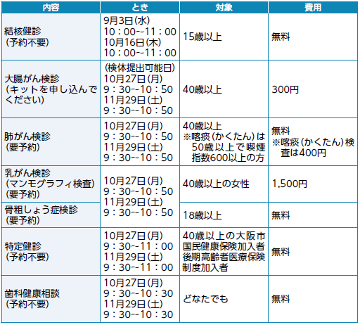 保健福祉課(健康推進)1階11番【電話】06-6267-9882【FAX】06-6267-0998