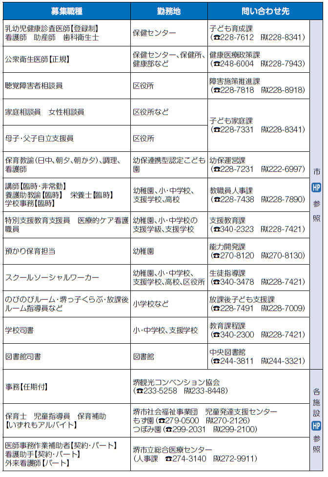 しごと 採用情報 27/31 前の記事 次の記事 発行日 : 2026年01月01日 自治体名 : 大阪府堺市 広報紙名 : 広報さかい 2026年1月号 令和7年12月10日時点の情報です。 【 】に雇用形態の表記のあるもの以外は会計年度任用職員として任用。 ◎最新情報は市HP(ホームページ)や問合せ先へお問い合わせください。 Tweet シェアする 情報ひろば -就職・転職- イベント -楽しむ・学ぶ-