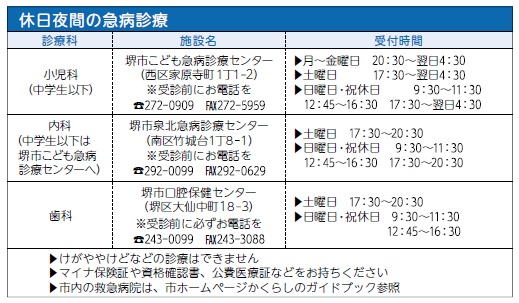 ・市内の救急病院は、市ホームページかくらしのガイドブック参照