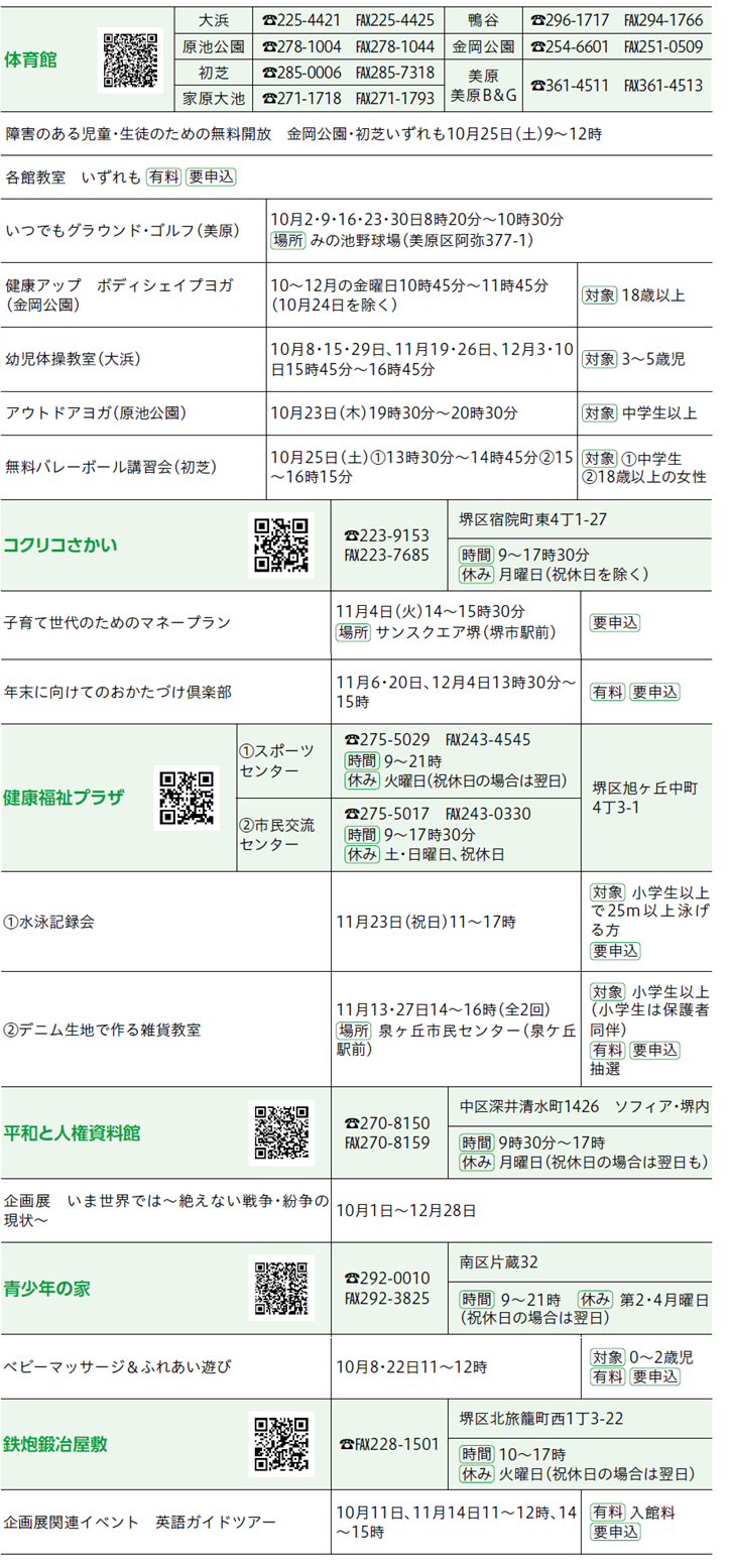 ◎申込方法などは、施設にお問い合わせいただくか、施設HPでご確認ください(要申込の記載がない場合は直接会場へお越しください)。