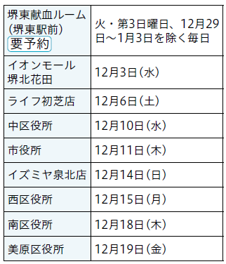 12月は大阪府献血推進月間です。命をつなぐ身近なボランティアに協力をお願いします。