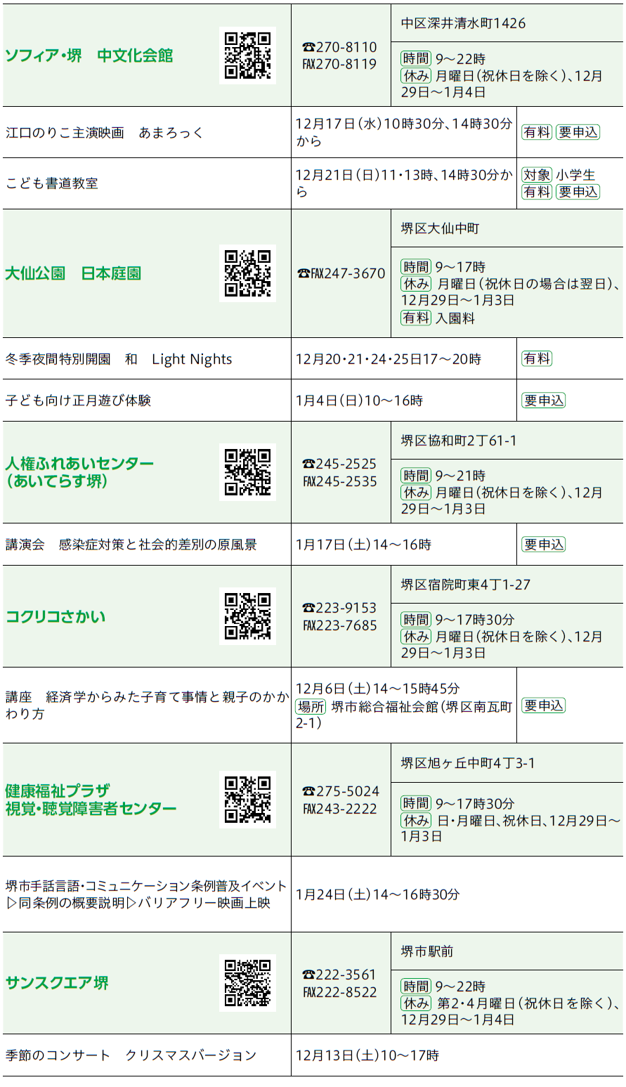 ◎イベントで有料の記載がないものは無料です。要申込で特に記載がないものは先着順です。