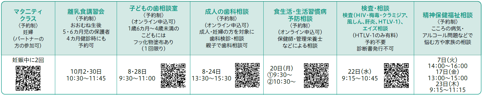 3回食のすすめ方の話や個別相談を行います。母子健康手帳と、塩分濃度チェックを希望の方は自宅のみそ汁などを50ml程度持参してください。