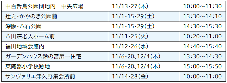 休館日:(中図書館・東百舌鳥分館※共通)11月10・17日、12月1・2日