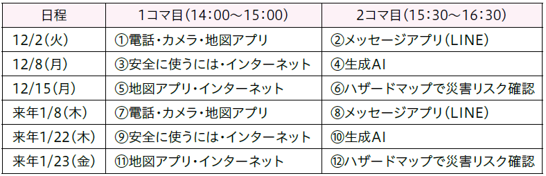 ※申し込みはいずれかの講座のみでも可。通信料は受講者負担。