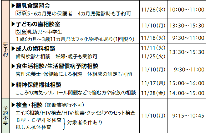 場所:いずれも中保健センター