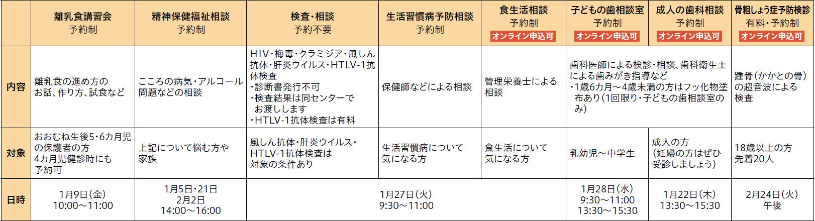予約は電話かFAXで東保健センターへ。《オンライン申込可》はオンラインでもできます。