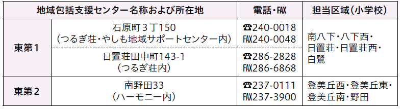 「疲れを感じている」「イライラして怒鳴ってしまった」「叩いてしまいそうになる(叩いてしまった)」「手伝ってくれる人や相談できる人がいない」などで悩んでいませんか。家族にも支援が必要な時があります。ひとりで抱え込まず、地域包括支援センターや東区役所内の東基幹型包括支援センターにご相談ください。