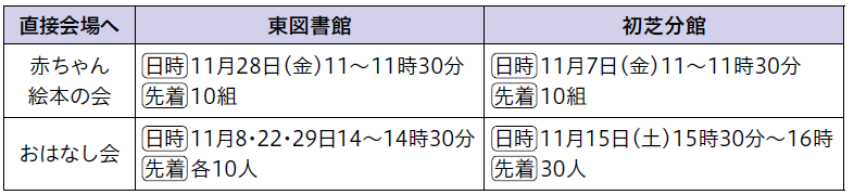 休館日:東図書館・初芝分館共通 11月10・17日、12月1・2日