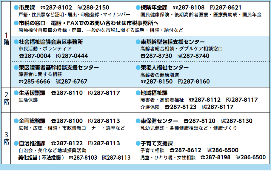 ■区役所・市役所などへのお問い合わせは、便利な直通番号をご利用ください!