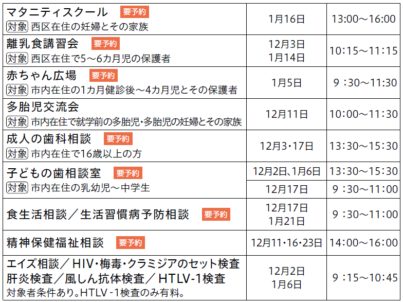 ※4カ月児健診・1歳6カ月児健診・3歳児健診(3歳6カ月児が対象)…通知が届かない方や、転入転出のときは保健センターへ。