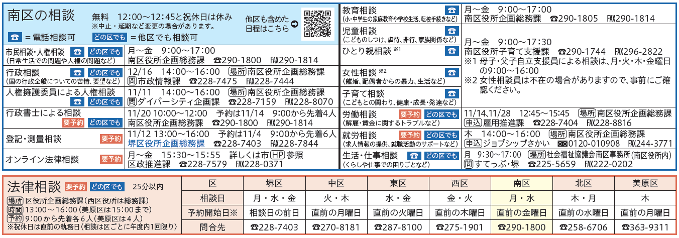くらし 南区の相談・法律相談 11/15 前の記事 次の記事 発行日 : 2025年11月01日 自治体名 : 大阪府堺市南区 広報紙名 : 堺市南区広報紙「みなみ」 2025年11月号 Tweet シェアする 泉北ニューデザイン推進室からのお知らせ 子育て支援課