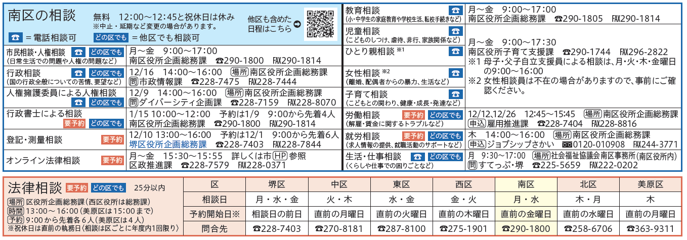 くらし 南区の相談・法律相談 11/17 前の記事 次の記事 発行日 : 2025年12月01日 自治体名 : 大阪府堺市南区 広報紙名 : 堺市南区広報紙「みなみ」 2025年12月号 Tweet シェアする ハッピークリスマスin泉ヶ丘 子育て支援課