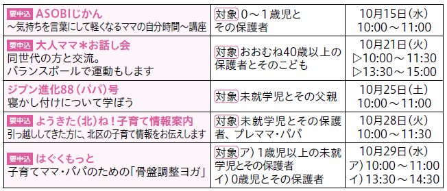 要申込:10月3日9時から電話で子ども家庭支援センター清心寮(リーフ)へ。先着順