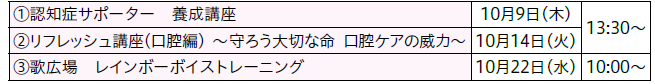 要申込:(1)10月1日から(2)10月7日から(3)10月16日から。いずれも先着順