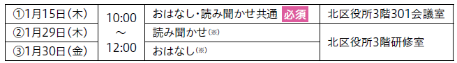 おはなし・読み聞かせ両方に興味のある方は(2)(3)を両方受講も可