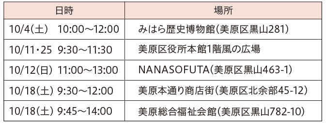 美原朝市 7/18 前の記事 次の記事 発行日 : 2025年10月01日 自治体名 : 大阪府堺市美原区 広報紙名 : 堺市美原区広報「みはら」 2025年10月号 いずれも売り切れ次第終了。マイバッグを持参。 問合せ:美原朝市運営委員会 【電話】090-2590-8866 Tweet シェアする ド・レ・美原(ミファラ)♪マルシェ 美原図書館の催し