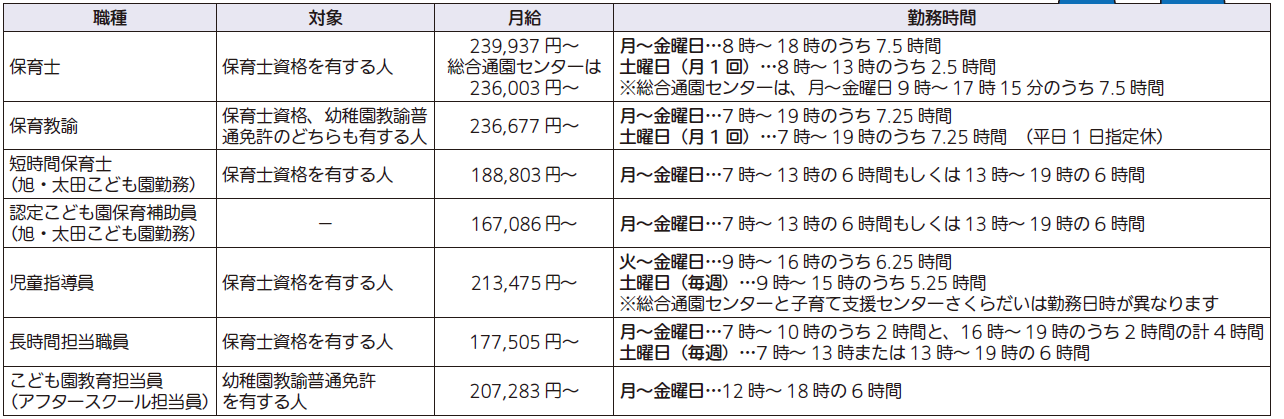 勤務地:市内保育所・認定こども園、総合通園センター12カ所(職種によって異なります)