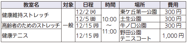 (3)は12月3日(水)~27日(土)に直接、中央体育館へ【電話】422-0326