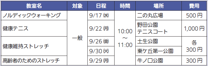 ▽第3期フィットネス教室各種(ヨガなど31教室)