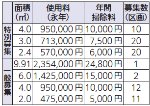 申込み・問合せ:3月31日(火)までに公園緑地課、墓苑事務所で配布する申込用紙(市ホームページからダウンロード可)を直接、公園緑地課墓苑担当へ