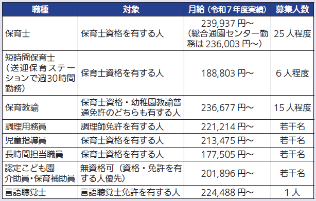 勤務地(基本):市内保育所・認定こども園・総合通園センター12カ所のうちいずれか(職種により異なる)