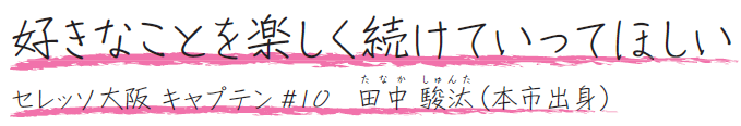 田中:サッカーに限らず、好きなことを楽しく続けていってほしいです。僕自身、ただサッカーが好きな小学生で楽しくサッカーを続けていて、それが仕事になりました。Jリーガーを含め様々な種目において、岸和田出身のスポーツ選手が出てきてほしいです。今後、もっと岸和田を盛り上げていけたらと思います!