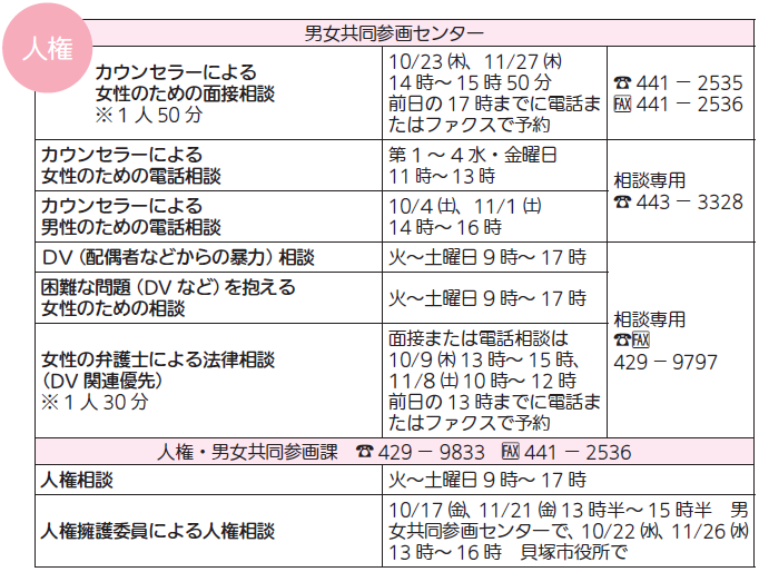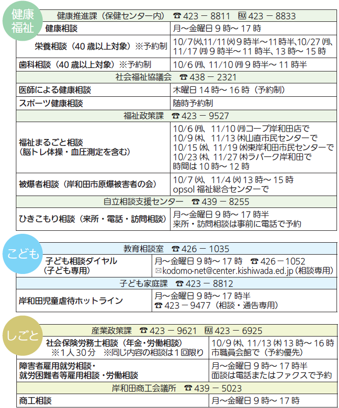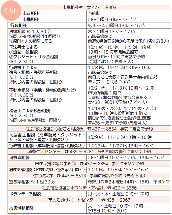 くらし 10・11月の相談 28/32 前の記事 次の記事 発行日 : 2025年10月01日 自治体名 : 大阪府岸和田市 広報紙名 : 広報きしわだ 2025年10月号 市内在住者を対象に無料で相談に応じます。秘密は厳守します。祝・休日を除きます。記載のない市外局番は「072」です。 Tweet シェアする 編集後記 魚庭(なにわ)の海まつり