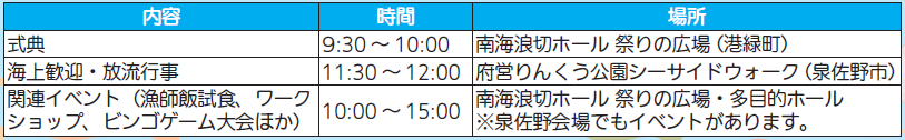来年11月14日(土)・15日(日)に大阪府で開催する「第45回全国豊かな海づくり大会~魚庭の海おおさか大会~」の開催機運を高めるため、1年前プレイベントを開催します。