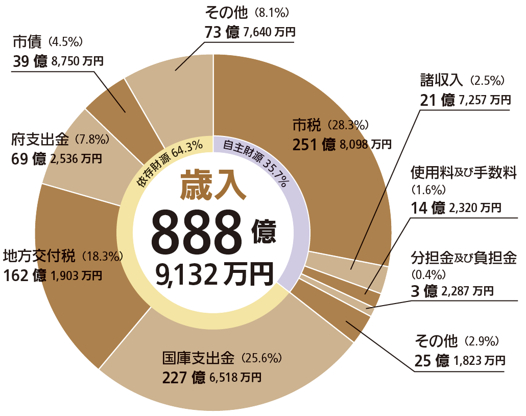 一般会計決算の歳入総額は888億9,132万円、歳出総額は878億3,038万円で、歳入から歳出を引いた額(形式収支)は10億6,094万円となり、翌年度へ繰り越すべき財源2億7,264万円を差し引いた額(実質収支)は7億8,830万円で、黒字となりました。