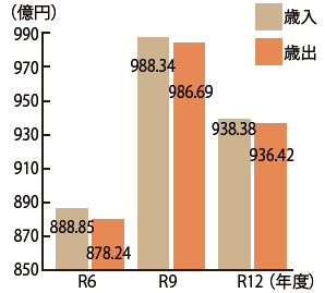 令和12年度までの計画期間における収支は、歳出において、人件費及び普通建設事業費で年度間の増減が生じることや、扶助費や公債費が増加するものの、歳入において、市税及び譲与税、交付金等が堅調に推移することを見込んでいるため、黒字で推移します。