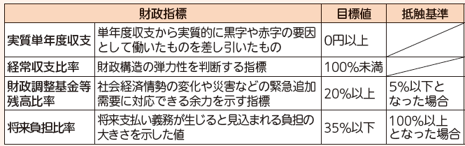 ▽財政指標に目標値及び抵触基準を設定