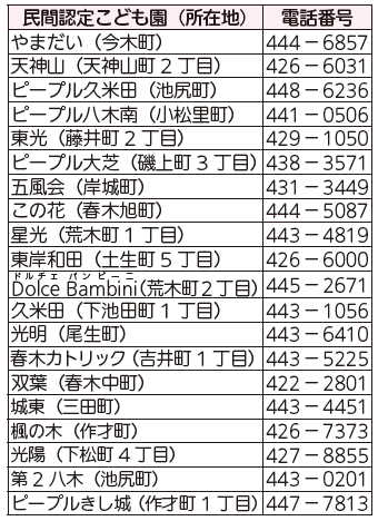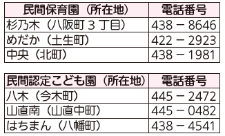 申込み・問合せ:電話で表の各園へ