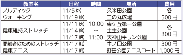 市内公園・運動広場教室(一般対象)