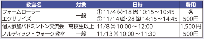 総合体育館(西之内町)の各教室