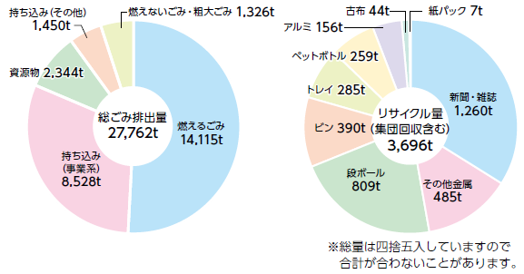 リサイクル率は12.9%でした。そのうち、自治会などが主体となって実施している集団回収は906tで、全リサイクル量の約24.5%を占めています。