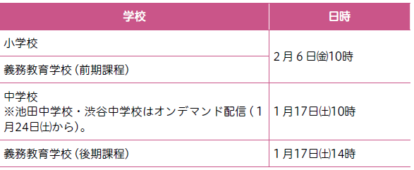 場所:各学校(オンデマンド配信の場合を除く)